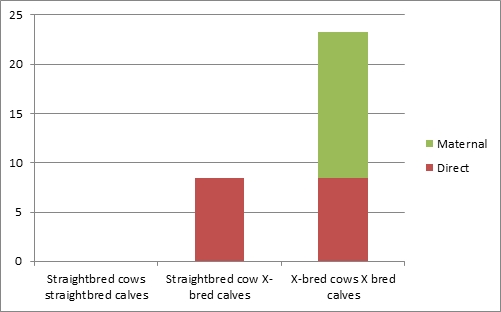 Figure 1. Responses in weaning weight per cow mated from different crosses (Adapted from information in Gregory, KE and Cundiff, LV (1980))