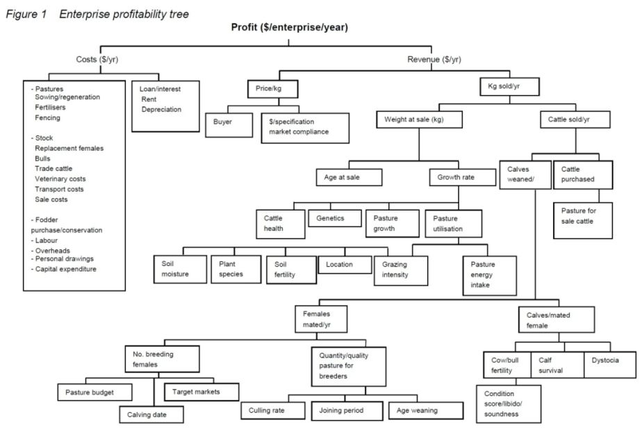 By identifying each aspect of production that incurs cost or generates revenue, the tree can help you assess those components of your enterprise that can be altered to have the most impact on productivity and overall profitability.